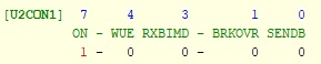 Az U2FIFO<R2XRBE><1> megtartotta a megváltozott 1-es állását, továbbra is az RXBF<0> bit 1-et jelez, az <RXBE><1> bit is megtartotta a 0-ra váltott állapotát.